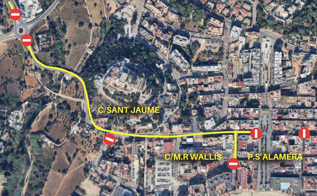 Además, en el tramo final del recorrido se producirán restricciones de tráfico en la PM-810, la calle Sant Jaume a la altura del Passeig de s’Alamera y la vía Mariano Riquer i Wallis, que permanecerán cerradas hasta la finalización del evento.