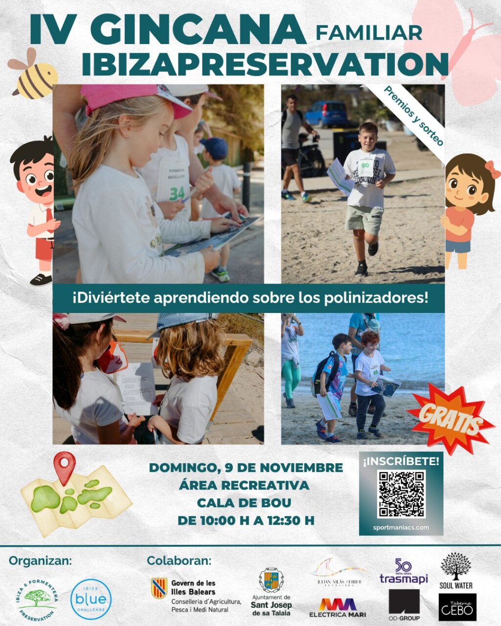 IbizaPreservation ha abierto ya las inscripciones para la cuarta edición de su Gincana Familiar, disponible a través de la plataforma sportmaniacs.com. La actividad, abierta a participantes de todas las edades y de carácter totalmente gratuito, tendrá lugar el domingo 9 de noviembre a partir de las 10:00 horas en el área recreativa de Cala de Bou, en el municipio de Sant Josep de sa Talaia.