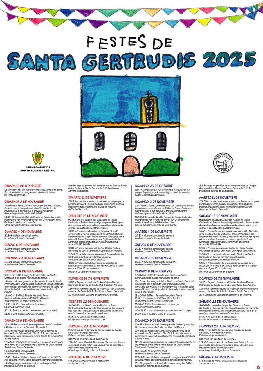 Santa Gertrudis de Fruitera se prepara para vivir su gran cita del año, unas fiestas patronales que llenarán de alegría las calles del pueblo desde finales de octubre hasta el 6 de diciembre de 2025. El programa incluye 36 actividades que mezclan lo mejor de la tradición ibicenca, la música en directo, la gastronomía local y el espíritu participativo de sus vecinos. Este año la organización ha querido mantener el equilibrio entre los actos tradicionales y las propuestas más actuales, para atraer tanto a residentes como a visitantes.