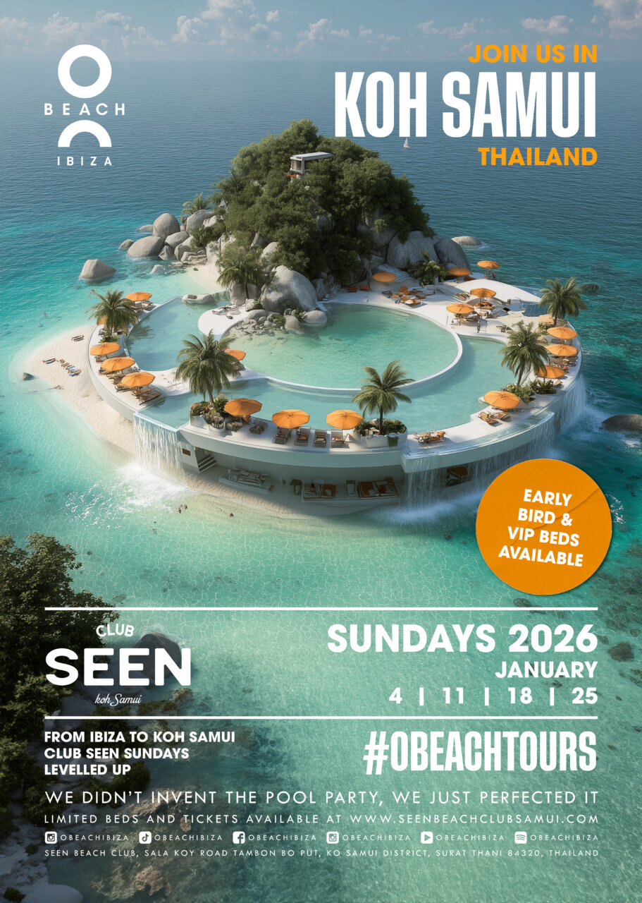 Este enero, O Beach Ibiza se traslada al sudeste asiático para celebrar un ciclo de fiestas que promete hacer historia. En colaboración con SEEN Beach Club Samui, el famoso club ibicenco presentará una experiencia única en Koh Samui, todos los domingos de enero —4, 11, 18 y 25 de enero de 2026— con la mezcla perfecta de música, sol, mar y diversión frente a la playa de Chaweng.