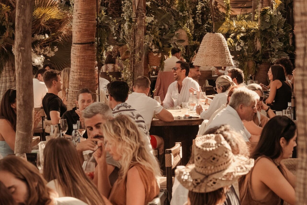 Desde su apertura a media mañana hasta la madrugada, el beach club se transforma en un recorrido sensorial donde la música marca el ritmo del día, enlazando tumbonas, gastronomía y tardeo hasta la puesta de sol y las cenas que anticipan la noche ibicenca.