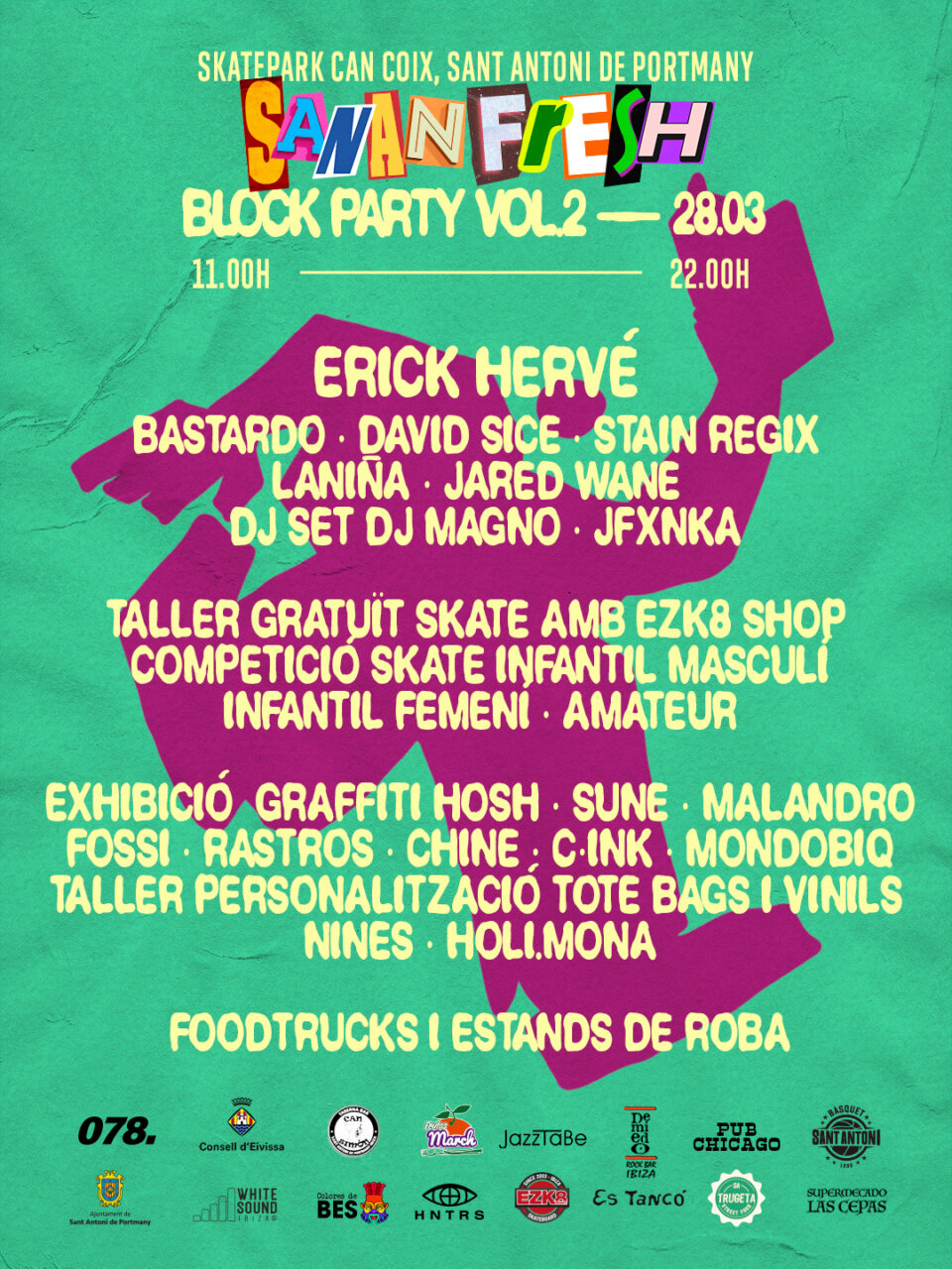 La cultura urbana volverá a tomar Sant Antoni de Portmany este sábado 28 de marzo con la celebración del Sanan Fresh Block Party Vol.2, un evento que combina música en directo, skate, graffiti y actividades creativas abiertas al público.