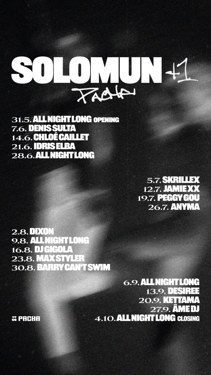 Pacha Ibiza volverá a acoger este verano una de sus residencias más emblemáticas. Solomun +1 regresa para su duodécima temporada consecutiva, extendiendo su programación del 31 de mayo al 4 de octubre, en lo que supone ya el decimocuarto año del artista vinculado al icónico club.