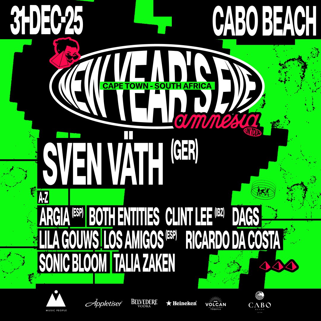 Amnesia Ibiza celebrará la llegada del nuevo año con una edición especial en Cabo Beach, en Ciudad del Cabo, donde el pionero del techno Sven Väth actuará por primera vez en Sudáfrica. Este hito marca el comienzo de las celebraciones por el 50º aniversario de Amnesia, uno de los templos más influyentes de la música electrónica mundial.
