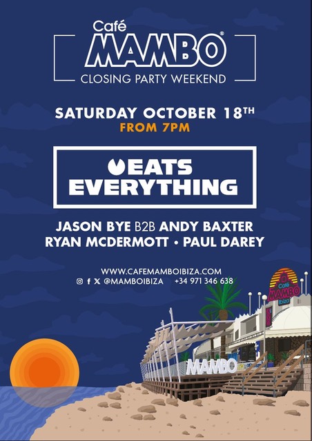 En Mambo, estará acompañado por Jason Bye b2b Andy Baxter, Ryan McDermott y Paul Darey, garantizando una noche vibrante frente al mar.