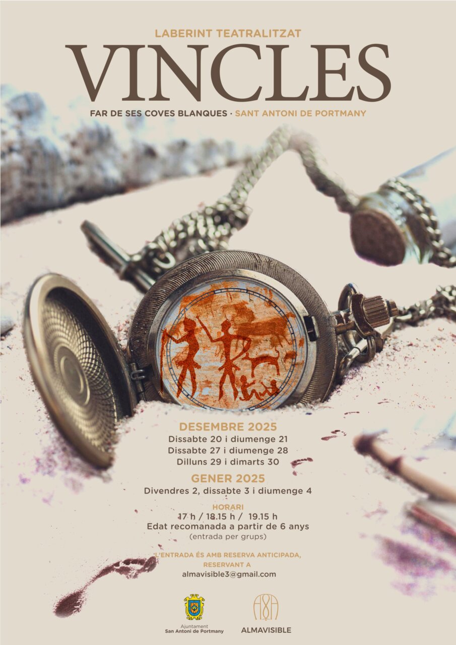 El departamento de Cultura del Ayuntamiento de Sant Antoni de Portmany presenta estas fiestas ‘Vincles’, la propuesta interactiva de la compañía Almavisible, dirigida por Celia Ruiz. La actividad, pensada para un público familiar y recomendada a partir de los 6 años, se instala de nuevo en el Far de ses Coves Blanques como uno de los planes culturales más atractivos del programa navideño del municipio.