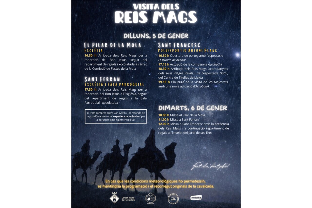FormenteraSus Majestades los Reyes Magos de Oriente llegarán a Formentera el lunes 5 de enero de 2026 para recorrer la isla y saludar a pequeños y mayores en una de las jornadas más esperadas de la Navidad. El itinerario comenzará en el puerto de La Savina y continuará por Sant Francesc, Sant Ferran y El […]